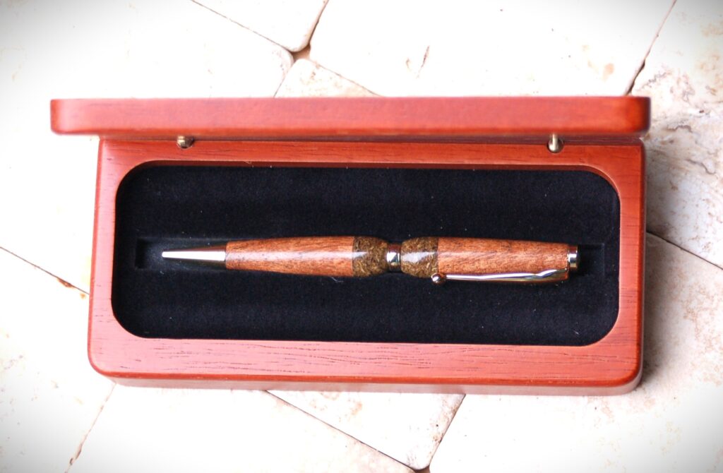 Here’s a photo of this pen in our Cherry Pen Box. To learn more about presentation boxes, click on the Boxes/Stands tab at the top.